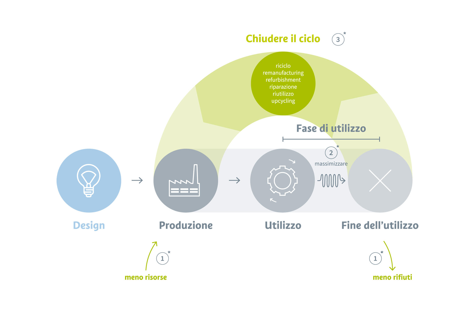 - Gli elementi di arredo riutilizzabili sono realizzati con materiali riciclati e, a loro volta, reintrodotti nel ciclo produttivo.